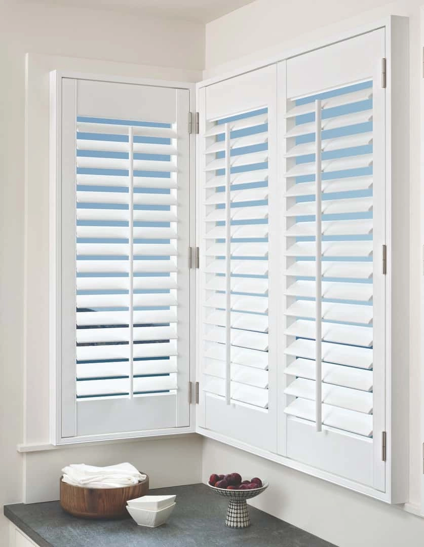 For a modern monochromatic window treatment with tonal variety try layering window coverings to add tonal alternatives in the form of different construction materials. For example, Hunter Douglas NewStyle® Hybrid Shutters paired with floor to ceiling Hunter Douglas Design Studio™ Side Panels & Drapery in different shades, tints, or tones of your base hue.