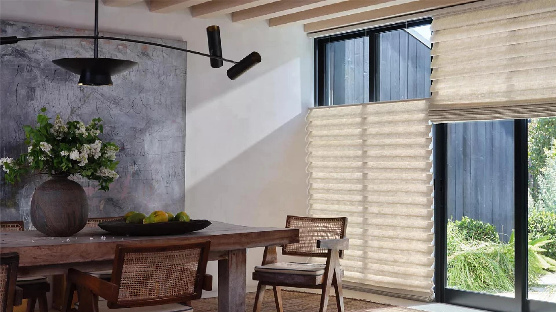 Our final tip for designing with Roman Shades is to upgrade the operating system. While classic Roman shades aren’t difficult to operate using the manual cord, modern motorized operating system have taken convenient control to new levels. Hunter Douglas’s PowerView® Automation, that is compatible with Vignette® Roman Shades and Solera® Roman Shades, puts control in the palm of your hand with remote control, wall panel, or an online app as options for user interfaces. PowerView® Automation can also integrate into home assistant programs or existing smart home systems for seamless control. Don’t underestimate how important usability is on a daily basis when designing with Roman shades.